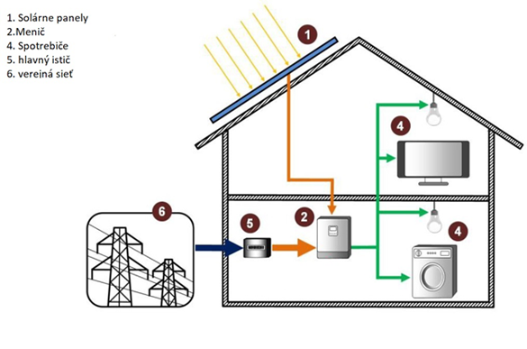 • vlastná spotreba – kombinuje spôsob využitia vyrobenej energie a to tak, že sa vyrobená elektrická energia primárne využíva pre vlastnú spotrebu a až jej nadbytok je odovzdaný do elektrifikačnej sústavy. Nadvýroba sa neskladuje v akumulátoroch
