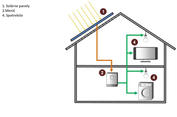 • vlastná spotreba – kombinuje spôsob využitia vyrobenej energie a to tak, že sa vyrobená elektrická energia primárne využíva pre vlastnú spotrebu a až jej nadbytok je odovzdaný do elektrifikačnej sústavy. Nadvýroba sa neskladuje v akumulátoroch